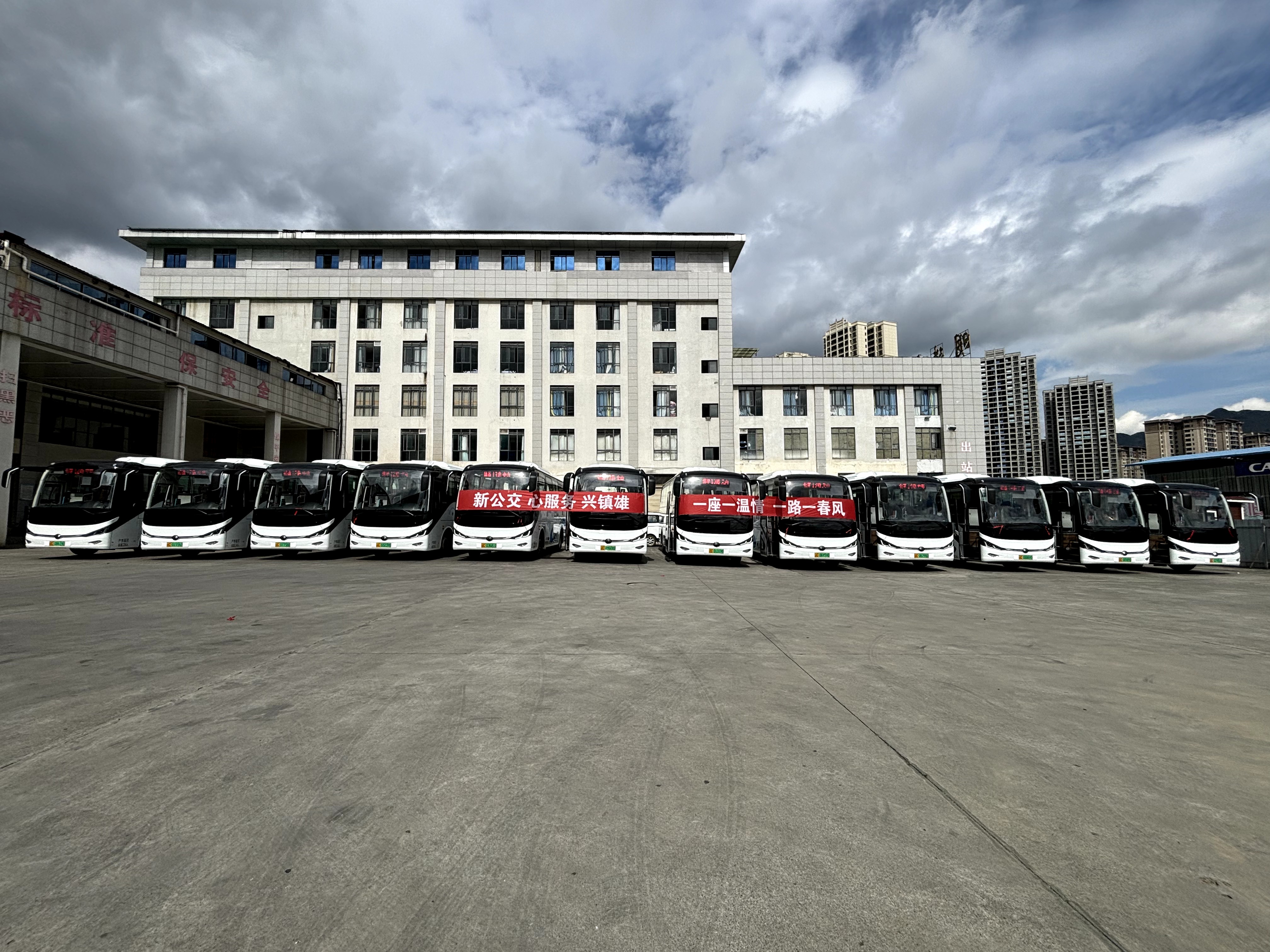 站场内,12辆崭新的纯电动公交车整齐排列,整装待发,将为沿线居民的出行体验带来全面升级。