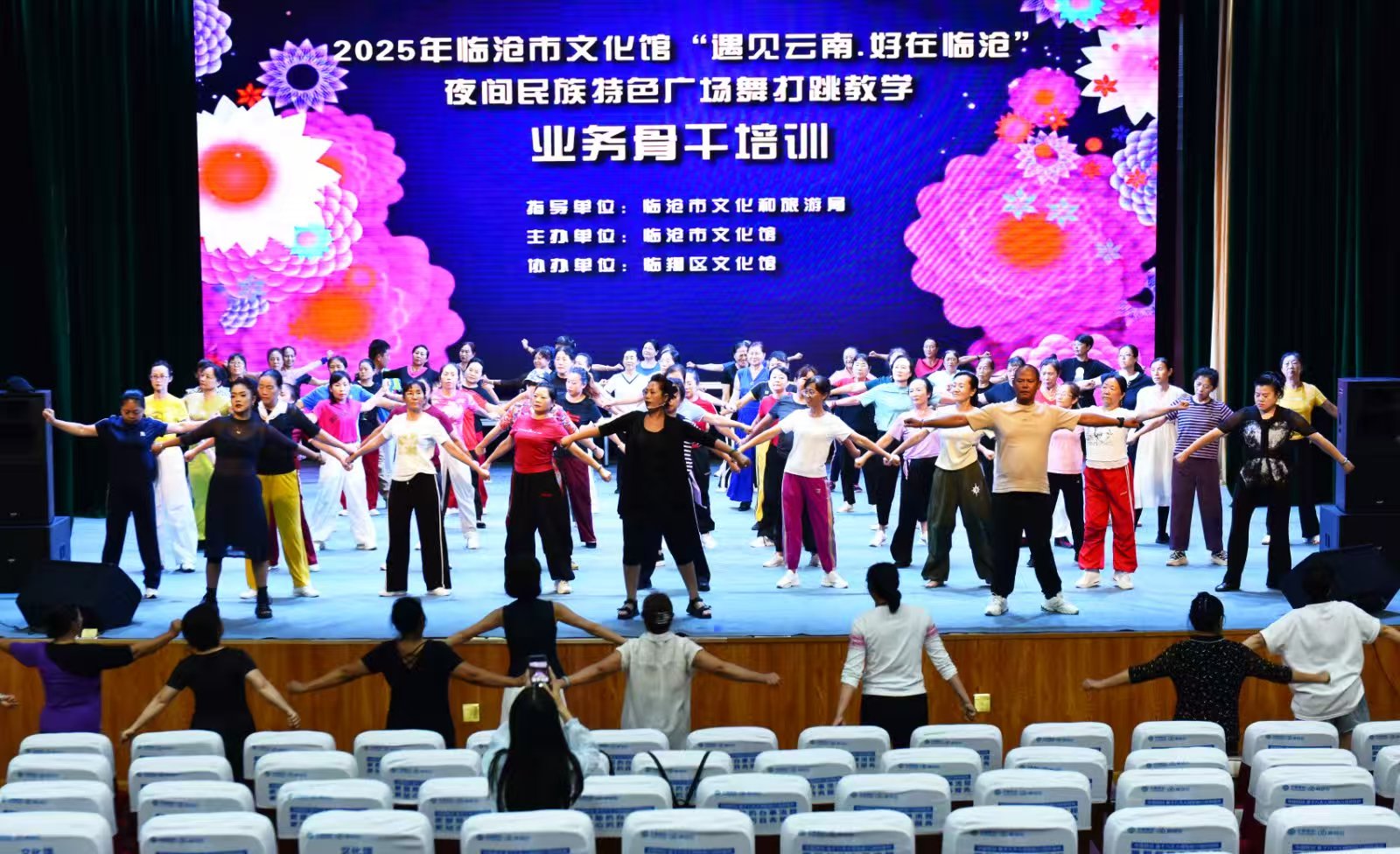 各级文化馆专业教师深入基层,围绕民族特色开展精准培训。同时,州(市)级指导教师分赴各县区推广统一编创的民族广场舞教材,涵盖彝族、傣族、白族、哈尼族等代表性舞步。