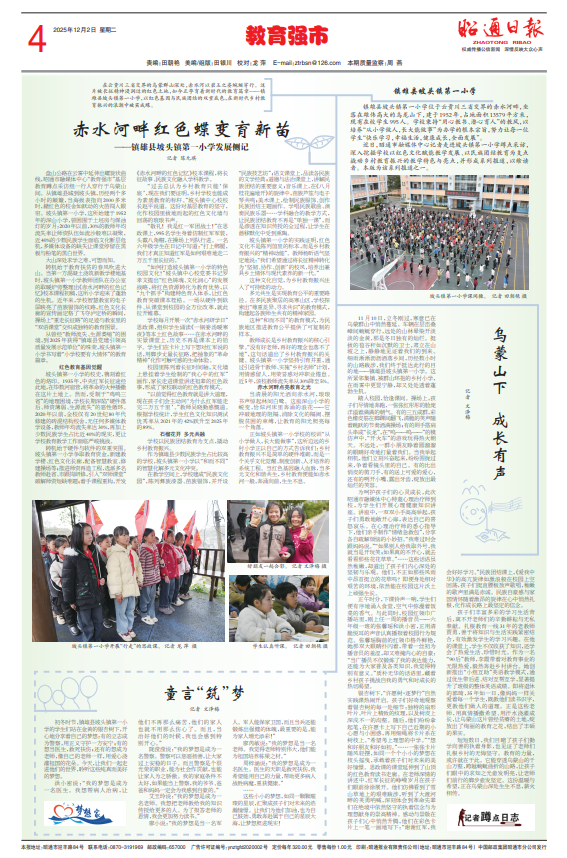 近日,昭通市融媒体中心记者走进坡头镇第一小学蹲点采访,深入挖掘学校以红色文化赋能教学发展、以民族团结教育为支点撬动乡村教育振兴的教学特色与亮点,并形成系列报道,以飨读者。本版为该系列报道之一。
